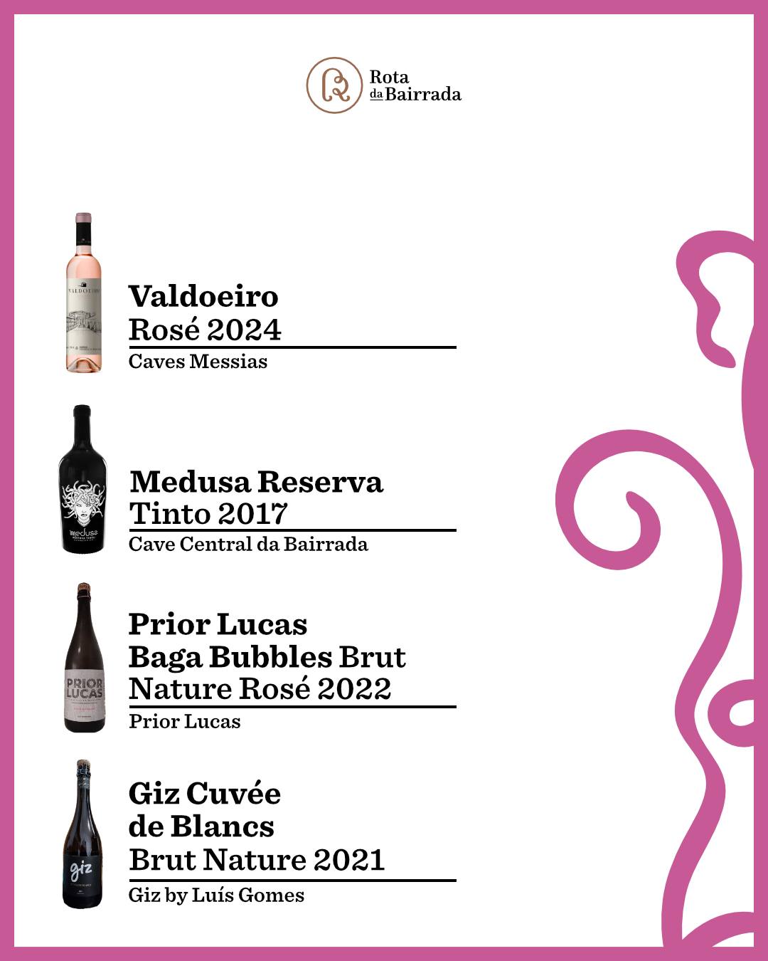A seleção integra vinhos tranquilos e espumantes, com destaque para a casta Baga, elemento central da identidade vitivinícola da Bairrada.