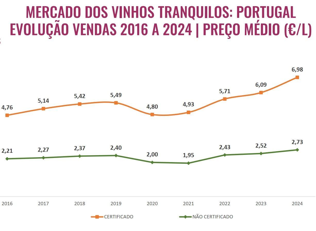 Este ritmo está acima da média dos últimos dez anos, período em que o sector do vinho português registou um crescimento acumulado (CAGR) de 2,76% entre 2015 e 2024.