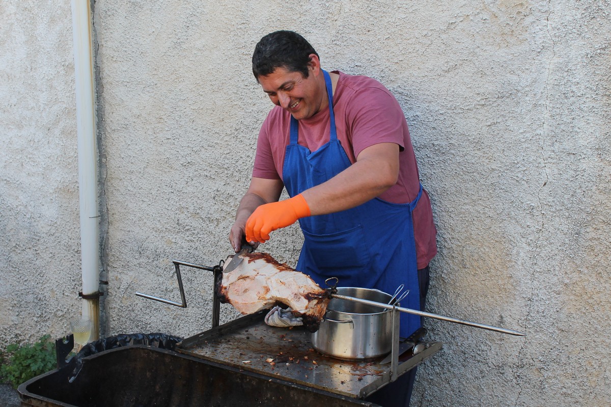 Nenhuma festa na Bairrada estaria completa sem comida. Havia petiscos de peixe e de carne, mas o momento alto foi, sem dúvida, a carne assada no espeto, comida ainda a fumegar, diretamente do fogo.